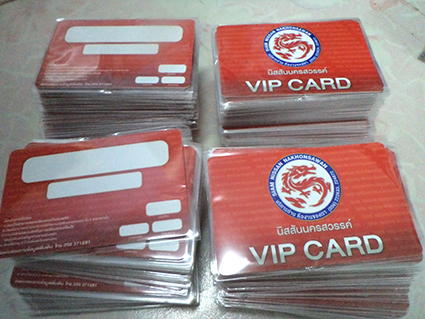 การพิมพ์การ์ด บัตรพลาสติก พีวีซีการ์ด พิมพ์สีแบบลูกค้า ตากแดดแช่น้ำได้ สีไม่ลอกไม่เลอะ